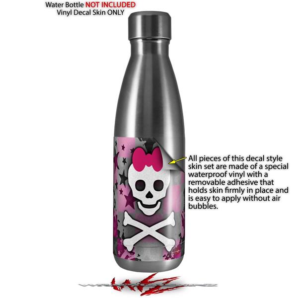 Skin Decal Wrap for RTIC Water Bottle 17oz Princess Skull Heart Pink (BOTTLE NOT INCLUDED)