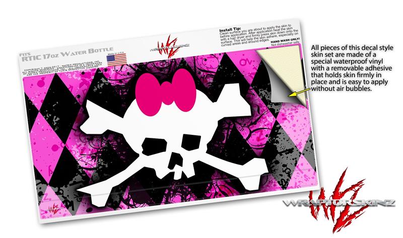 Skin Decal Wrap for RTIC Water Bottle 17oz Pink Diamond Skull (BOTTLE NOT INCLUDED)