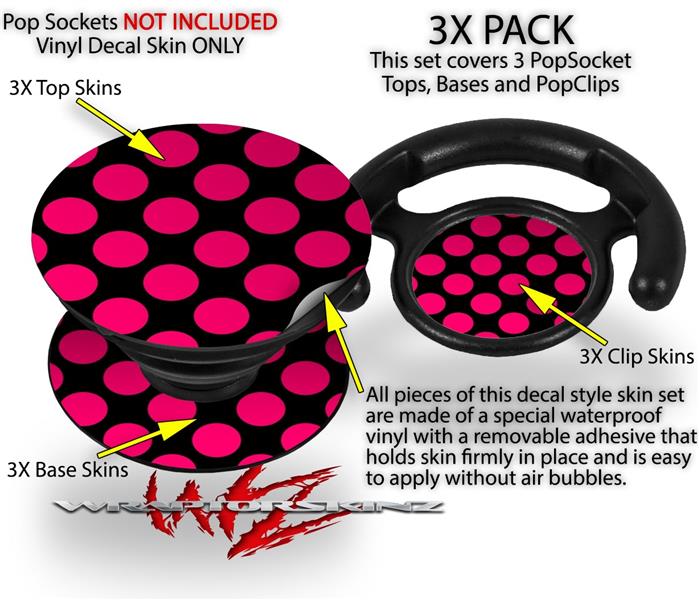 Decal Style Vinyl Skin Wrap 3 Pack for PopSockets Kearas Polka Dots Pink On Black (POPSOCKET NOT INCLUDED)